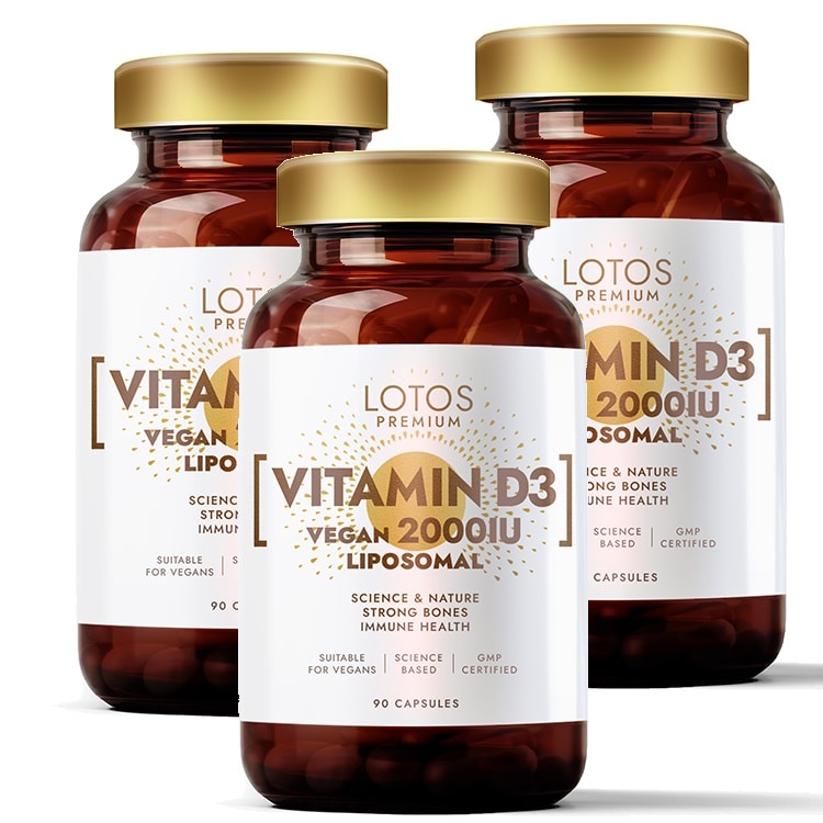 LOTOS PREMIUM Liposomal Vitamin D3 Vegan 2000IU sastāvā esošais D vitamīns palīdz uzturēt kaulu veselību un normālu muskuļu darbību, kā arī veicina normālu imūnsistēmas darbību.